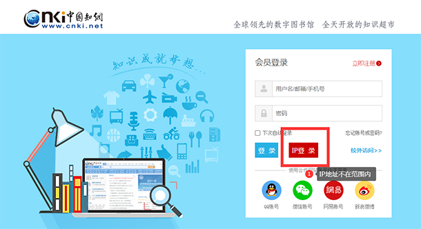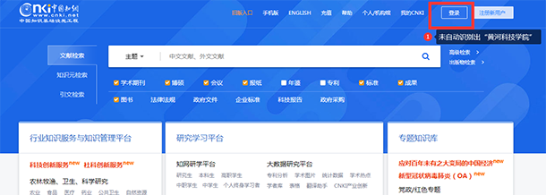 知网界面右上角没有出现“黄河科技学院”或者登录界面不能通过“IP登录”进入