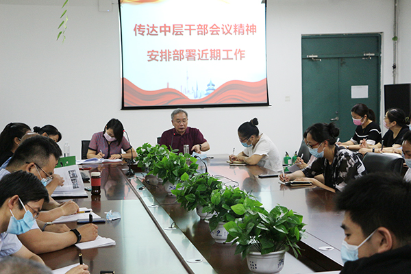 会议上,馆长岑少起传达了校长杨雪梅在学校中层干部会议上的讲话和董事长胡大白关于学校数字化转型的重要讲话精神,精准阐释了学校数字化转型发展的思路和理念。要求全体馆员认真学习、思考数字化转型的有关理论、知识、技术和方法,把思想和行动统一到学校的决策和部署上来,理清思路,振奋精神,鼓足干劲,狠抓工作落实,统筹做好疫情防控和学校改革发展工作,确保2020年各项目标任务的顺利完成。副馆长唐玲传达了学校近期党建工作安排和行政工作要点,结合图书馆实际工作,对图书馆本学期末、暑假期间、开学后有关工作做出具体安排。希望全体馆员要认真领会会议精神,各部门切实做好工作计划,责任到位,扎实做好毕业生返校工作,高质量做好党建和思想政治工作,全面做好常态化疫情防控工作,加快推进学校数字化转型发展;同时以“建党99周年及第十一届读书月活动”为契机,不断创新工作方式和思路方法,进一步强化责任担当,凝心聚力,真抓实干,推动图书馆事业进一步发展。