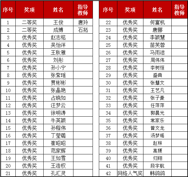 附:获奖师生名单
