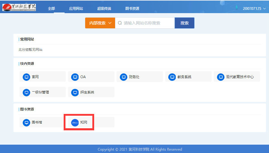 输入自己的校园网账户进行登陆,点击“知网”就可登陆。
