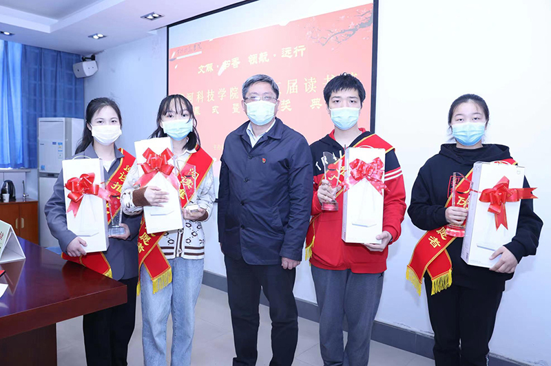 在颁奖会上,胡大白董事长结合自己数十年来的读书经历,勉励广大读者要多读书,勤读书,善读书,说学校古天乐代言太阳集团很丰富、读书气氛也非常浓郁,希望同学们多去图书馆,真正享受读书的乐趣,不断厚重学养,润泽人生底蕴。杨雪梅校长谈到,2022年 “全民阅读”连续第九次写入政府工作报告,从“倡导全民阅读”到“深入推进全民阅读”,上升为党中央的一项重要战略和发展蓝图,体现了以习近平同志为核心的党中央高度重视社会主义文化建设。她鼓励同学们牢记习近平总书记对青年“立大志、明大德、成大才、担大任”的殷殷期许,从阅读中汲取精神力量,行稳致远。贾正国书记寄语广大师生珍惜读书时光,让阅读成为终生的习惯,在读书中求新知,在读书中求创新,不断培养自己胸怀家国的情怀、增强服务国家的才干。杨保成副校长寄语读者说,最是书香能致远、腹有诗书气自华,希望同学们珍惜人生的黄金时代,不负青春年华,勤学知识,多长才干,善谋创新。他寄语图书馆,牢记宗旨和使命,继续把读书节办的更精彩,更有内涵、更具特色,为助力学校早日建成国内一流应用科技大学作出贡献。