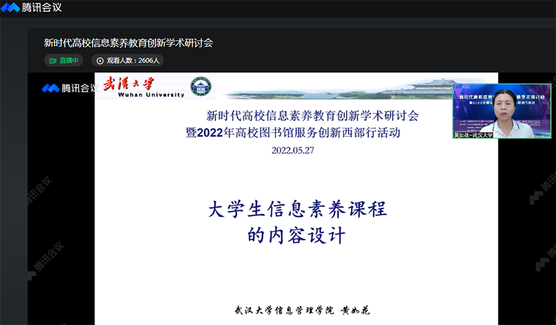 5月27日,由教育部高等学校图书情报工作指导委员会主办,在四川成都召开了“新时代高校信息素养教育创新学术研讨会暨2022年高校图书馆服务创新西部行活动”。本次会议以“新时代信息素养教育创新:发展趋势、课程思政与教学设计”为主题,来自全国高校信息素养教育教学领域的25名专家分享了各自信息素养教育教学的经验和做法,场面宏大,干货满满。我馆全文献信息检索课老师全程参与了同步线上学习。