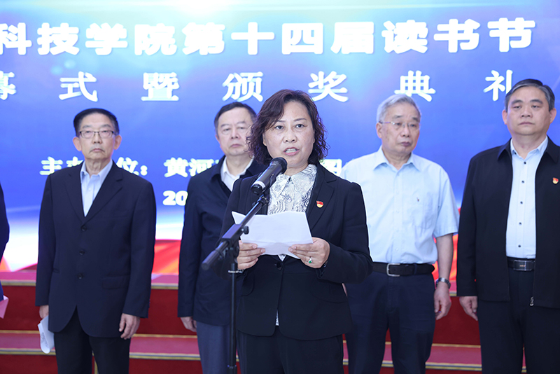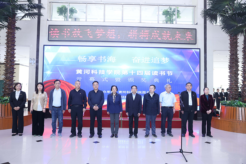 书香守望,阅见春光。又逢一年“世界读书日”,4月20日,以“畅享书海 奋进追梦”为主题的“黄河科技学院第十四届读书节开幕式暨颁奖典礼”活动,在图书馆一楼大厅成功举行。来自各教学单位的200多名师生代表参加了活动,河南省高校图工委主任崔慕岳,河南省高校图工委副主任、秘书长崔波,黄河科技学院董事长胡大白、副校长于向东、教育教学中心常务副主任李高申、医学院分党委书记张伟、外国语学院分党委书记郑月、工学部分党委副书记曾秋菊、国际学院学院分党委副书记郭建伟及图书馆馆长丁富云、原馆长岑少起等出席开幕式。