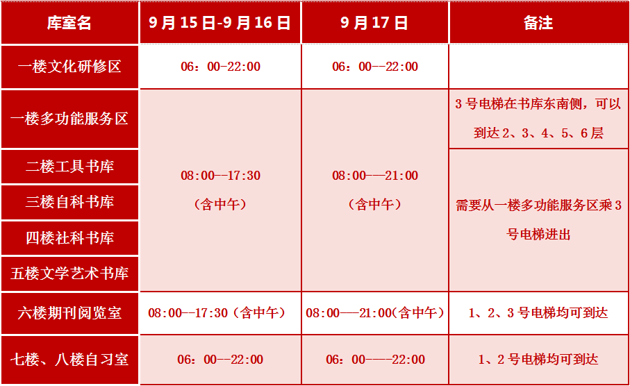 为了满足广大师生教学及科研需求,更好的服务于我校师生,图书馆将于中秋节假期期间照常开放,具体开放安排如下: