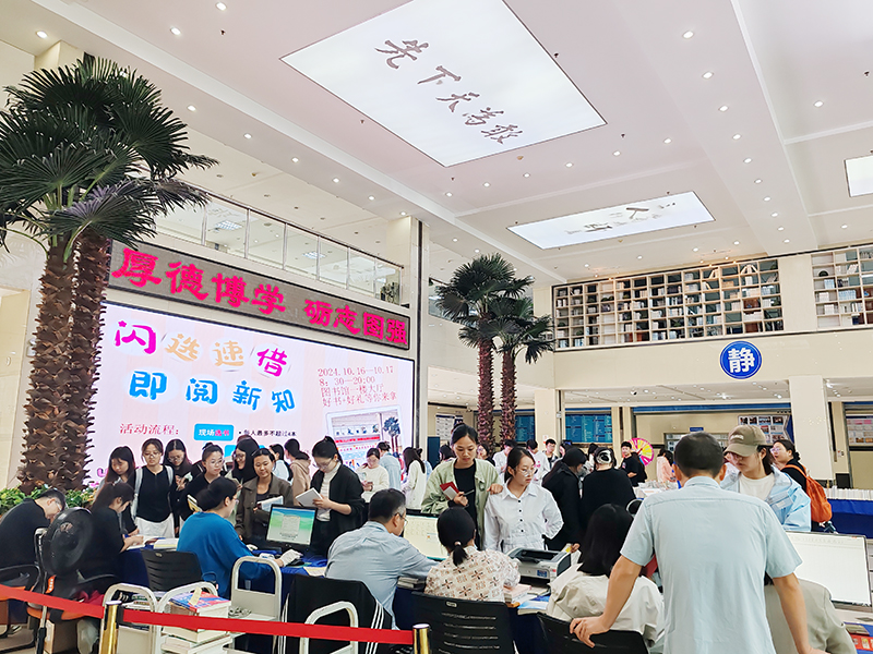 10月16日至17日,一场别开生面的新书现场选借活动在图书馆一楼大厅热烈展开,吸引了众多师生的热情参与。本次活动以“闪选速借,即阅新知”为主题,旨在为广大读者提供一次近距离接触新书、快速借阅的绝佳机会。
