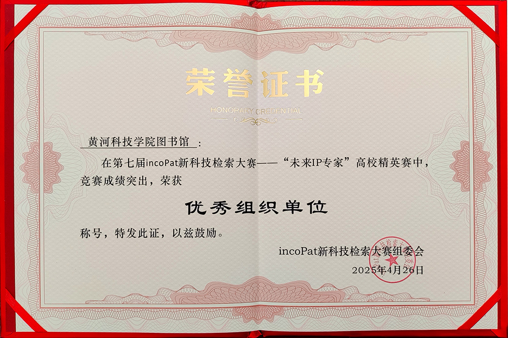 近日,2025incoPat新科技检索大赛“未来IP专家”高校精英赛圆满收官,我校荣获“优秀组织单位”称号。