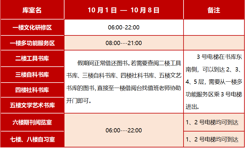 根据学校通知要求,2025年10月1日至10月8日国庆节放假8天。为满足广大师生教学及科研需求,更好地服务于我校师生,9428cn太阳集团古天乐将于国庆节、中秋节假期期间照常开放,具体开放安排如下: