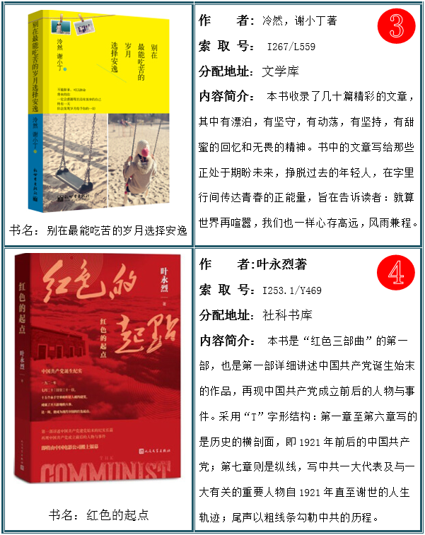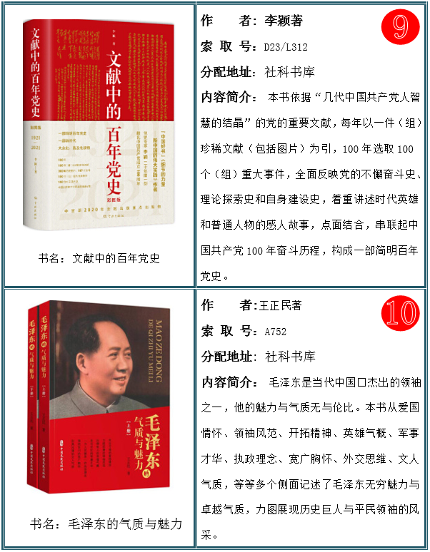 2021年10期上架新书共830种,1200册。欢迎全校师生读者及时关注图书馆新增图书信息,根据自己的需求到图书馆各个书库进行浏览借阅。