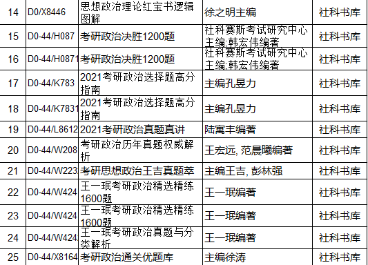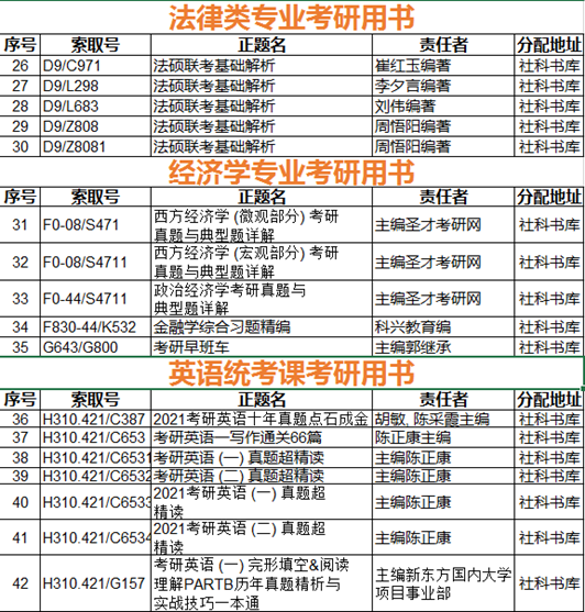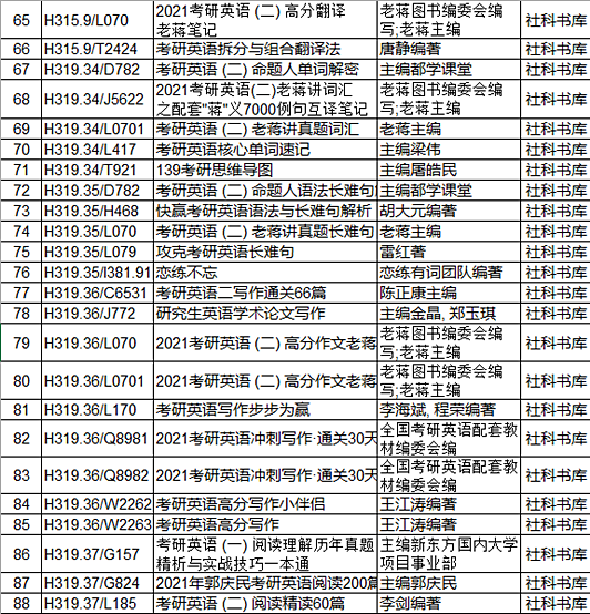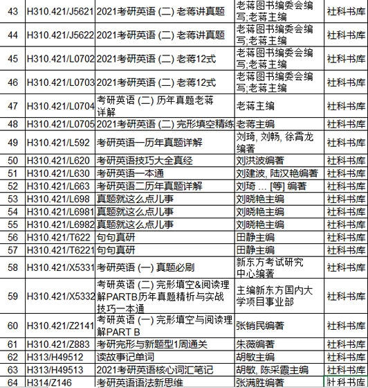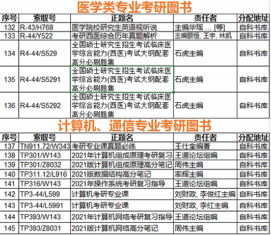 2020年02期上架考研类新书共145种,151册。欢迎全校需要考研的读者及时关注图书馆新增图书信息,根据自己的需求到图书馆各个书库进行浏览借阅。