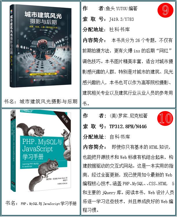 2021年15期上架新书共914种,1798册。欢迎全校师生读者及时关注图书馆新增图书信息,根据自己的需求到图书馆各个书库进行浏览借阅。