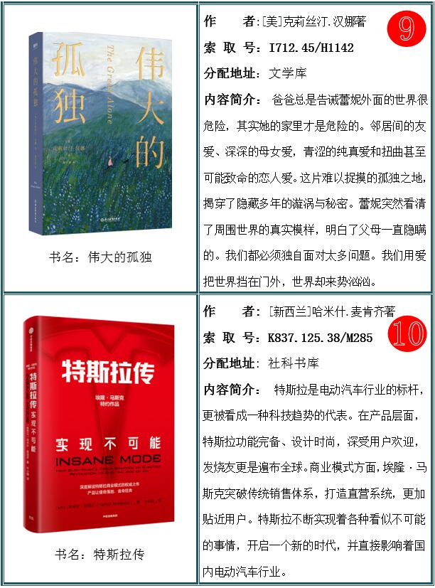 2021年16期上架新书共1078种,2099册。欢迎全校师生读者及时关注图书馆新增图书信息,根据自己的需求到图书馆各个书库进行浏览借阅。