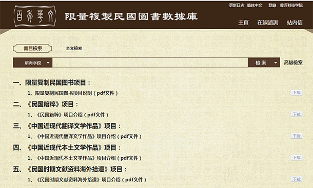 《中国近现代本土文学作品》电子全文图书系2005-2014年全国高等学校图书情报工作指导委员会文献资源建设工作组和中国图书馆学会高校分会研究小组进行的《百年华文人文社会科学学术图书要目》项目的子项目《限量复制民国时期图书》中的四个专题之一。