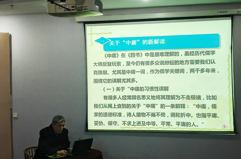讲座伊始,岳德常教授对《中庸》进行了新解读,所谓“中庸”并不是通常所理解的不偏不倚、不走极端,而是坚持遵道而行,不偏离也不改变,始终一贯地坚持下去,这是儒家君子的本质特征。他指出,我们要正确地理解中庸,必须联系《大学》中的“大学之道”,必须踏上“大学之道”进入“光明区”的人才能对中庸有正确的理解和体验。《大学》与《中庸》是一个有机的整体,《大学》告诉人们什么是“大学之道”,为人们打开一条通向“光明区”的道路,《中庸》则告诉人们如何把自己的生命轨迹保持在“大学之道”上。