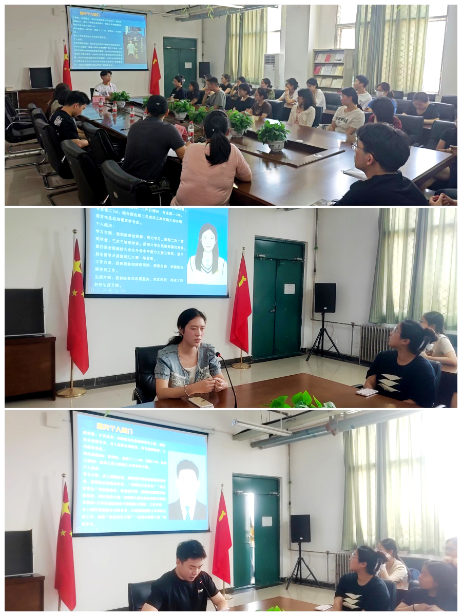 首先来自工学部、考取北京科技大学材料工程专业的王赛赛同学分享了自己的备考期间的心路历程。他讲到,扎实的基础知识是考研成功的关键,考研的道路上没有捷径可走,他特意提到汇集数学的错题集非常重要,英语拿分决定性因素就是单词基础,重点单词背5遍,剩下的大概浏览下,这样考场上80%的单词都熟悉。来自医学部、考取郑州大学药理学专业的邓瑞彬同学提出,考研是一场持久战,是个体力活,制定一个合理的复习计划至关重要,切忌三天打渔两天晒网,英语阅读理解题方面,她至少要做3-5遍历年真题。来自商学部、考取河南大学外国语言学及应用语言学专业的王倩倩同学提到,选择学校很重要,要善于搜索学校导师和导师研究方向、善于对比学校历年分数线、复录比和报录比的情况等,这个很关键。来自工学部、成功上岸上海理工大学光学工程专业的高昊昊同学则以风趣幽默的方式分享了他的考研经验。他提到,他们有6个同学参加了学校暑假组织的考研强化班,后来这个6个同学全都成功上岸。他说坚持全面听课,做好关键笔记,做到对所学知识有一个体系认知,知识理解,课后要做基础配套练习,及时解决出现的问题。另外他从政治考试范围、背诵时间分配上和大家做了详细的分享。最后他建议大家参加学校的那个考研强化班,学习效率确实提升很快,当然也要因人而异。