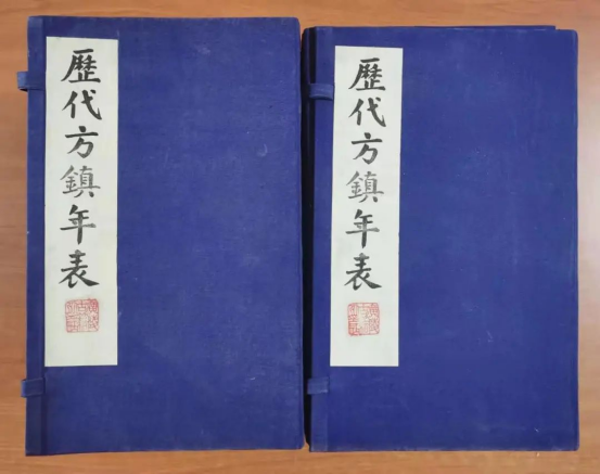 《歷代方鎮年表》清吴廷燮撰,五十六卷,二十二册。其中《汉季方镇年表》、《三国方镇年表》各一卷,《晋方镇年表》三卷,《宋齐梁陈方镇年表》各一卷,《元魏方镇年表》二卷,《东魏西魏北齐周隋方镇年表》各一卷,《唐方镇年表》八卷,《五季方镇年表》二卷,《北宋方镇年表》四卷,《南宋制抚年表》二卷,《辽方镇年表》一卷,《金方镇年表》一卷,《元行省丞相平章年表》二卷,《明督抚年表》十卷,《清疆帅年表》十卷。每一年表前均有序录,叙述方镇产生原因及其过程。