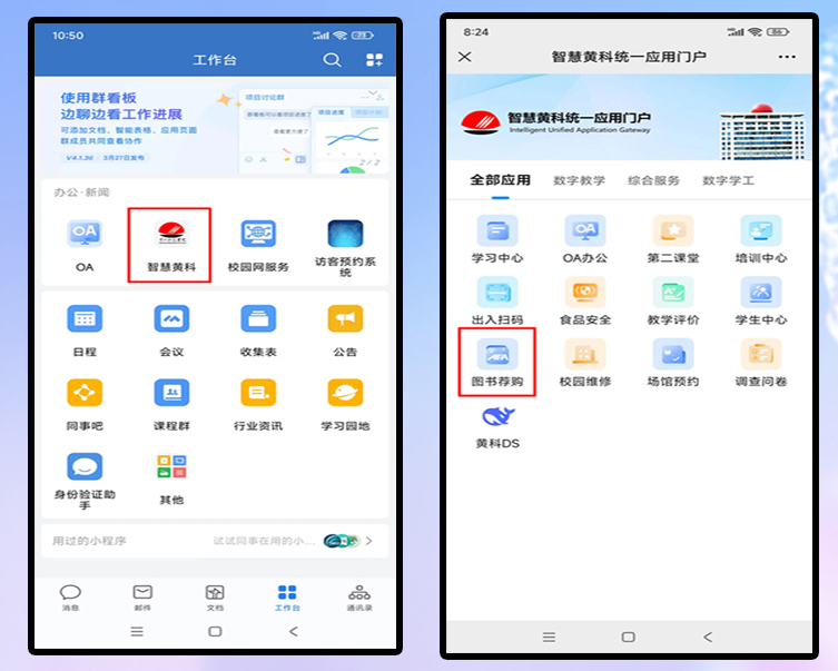 1、打开智慧黄科平台,选择图书荐购模块,进入畅想之星阿法购平台。